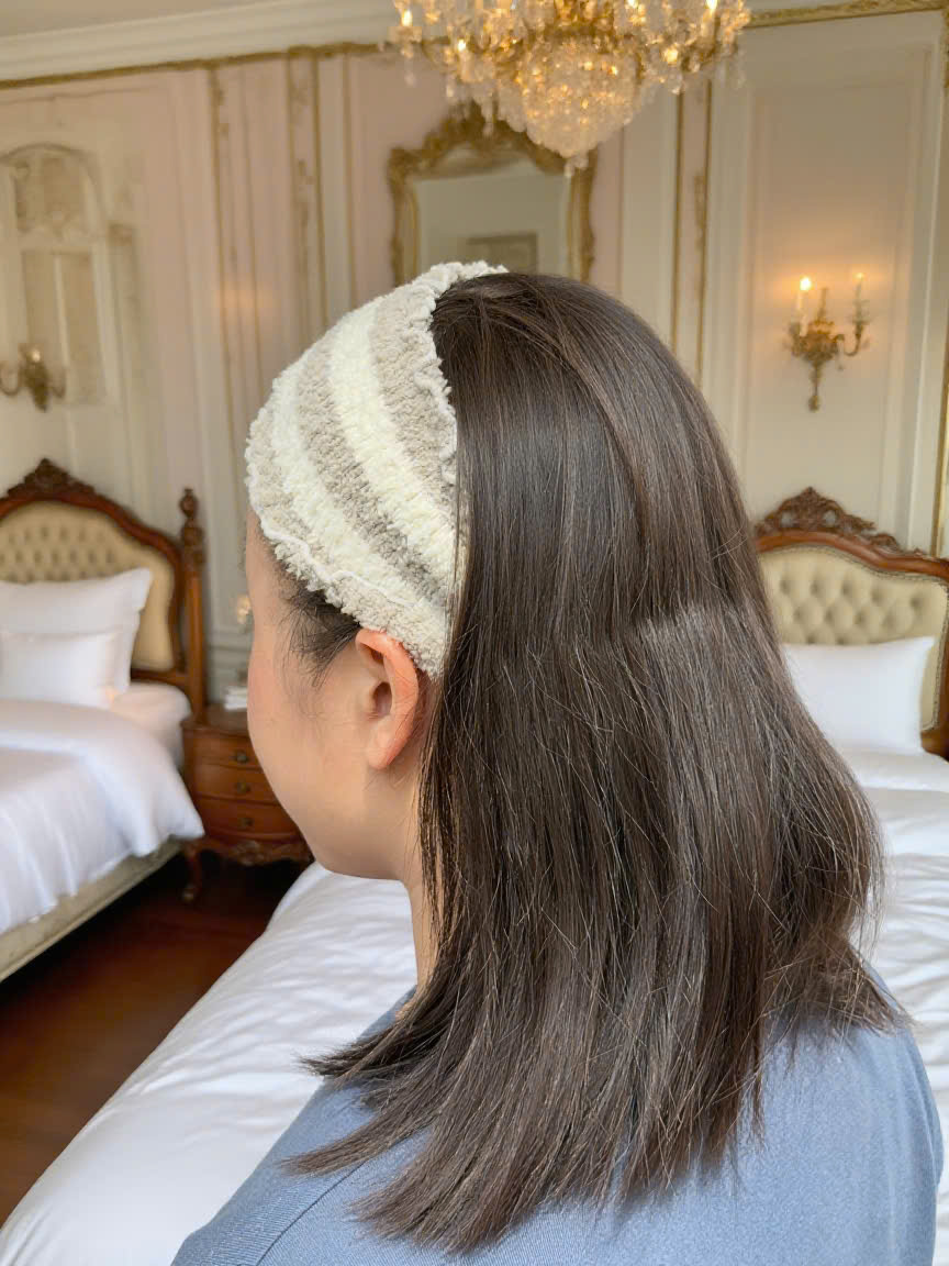 – Công dụng: giữ gọn tóc để rửa mặt hoặc trang điểm. Thiết kế sọc đơn sắc. Chiếc khăn turban mềm mại này có kết cấu tuyệt vời và co giãn tốt. Hình thức xinh xắn gọn nhẹ, đảm bảo sẽ đánh gục chị em từ cái nhìn đầu tiên.