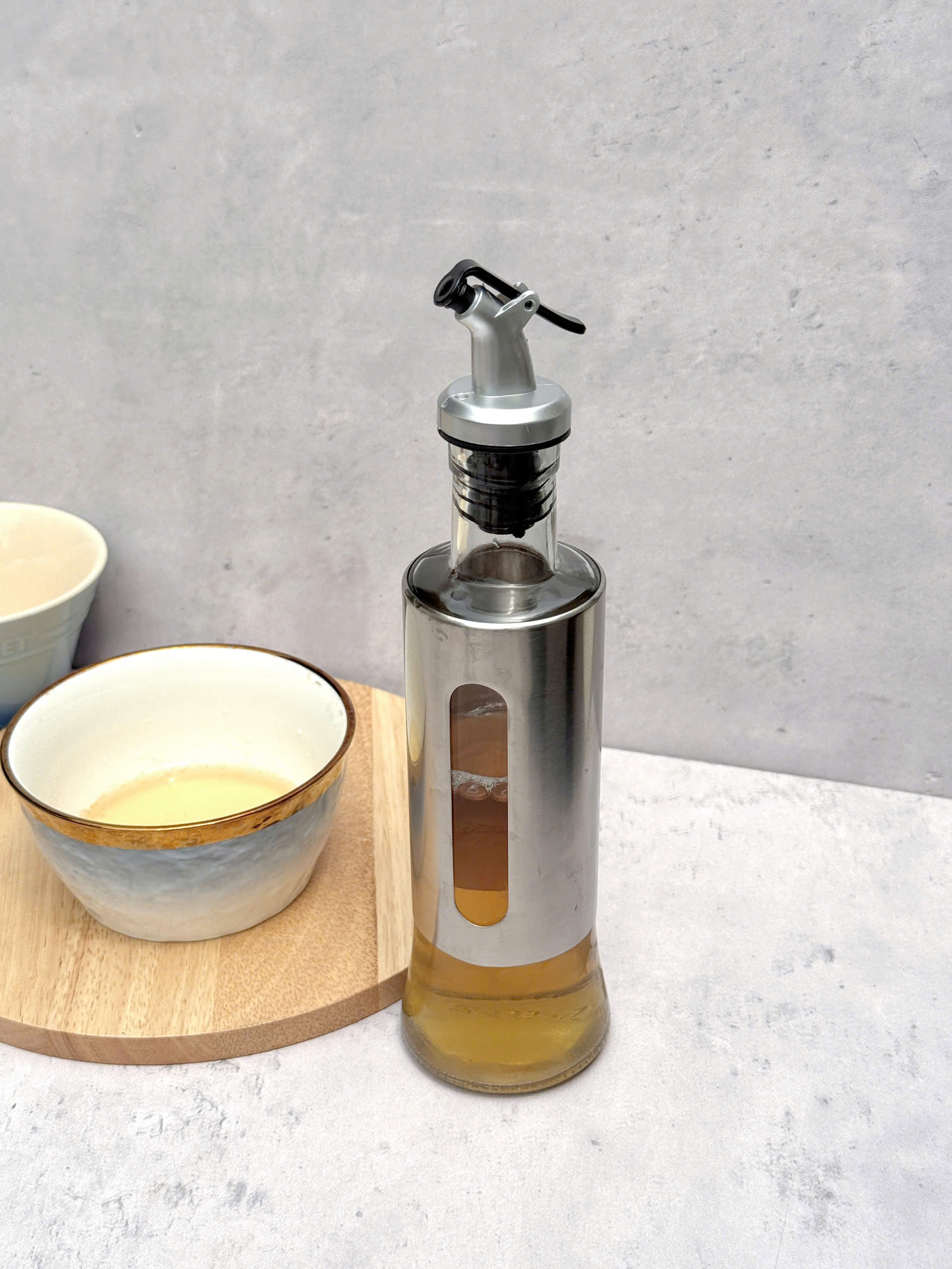 – Công dụng: dung tích lớn 300ml dùng đựng dầu ăn, nước mắm, nước tương v.v. Dễ dàng rót chỉ với một lần chạm! Chai đựng dầu và giấm được thiết kế đẹp mắt và dễ sử dụng. Chất liệu inox và thủy tinh rất an toàn, bền đẹp.