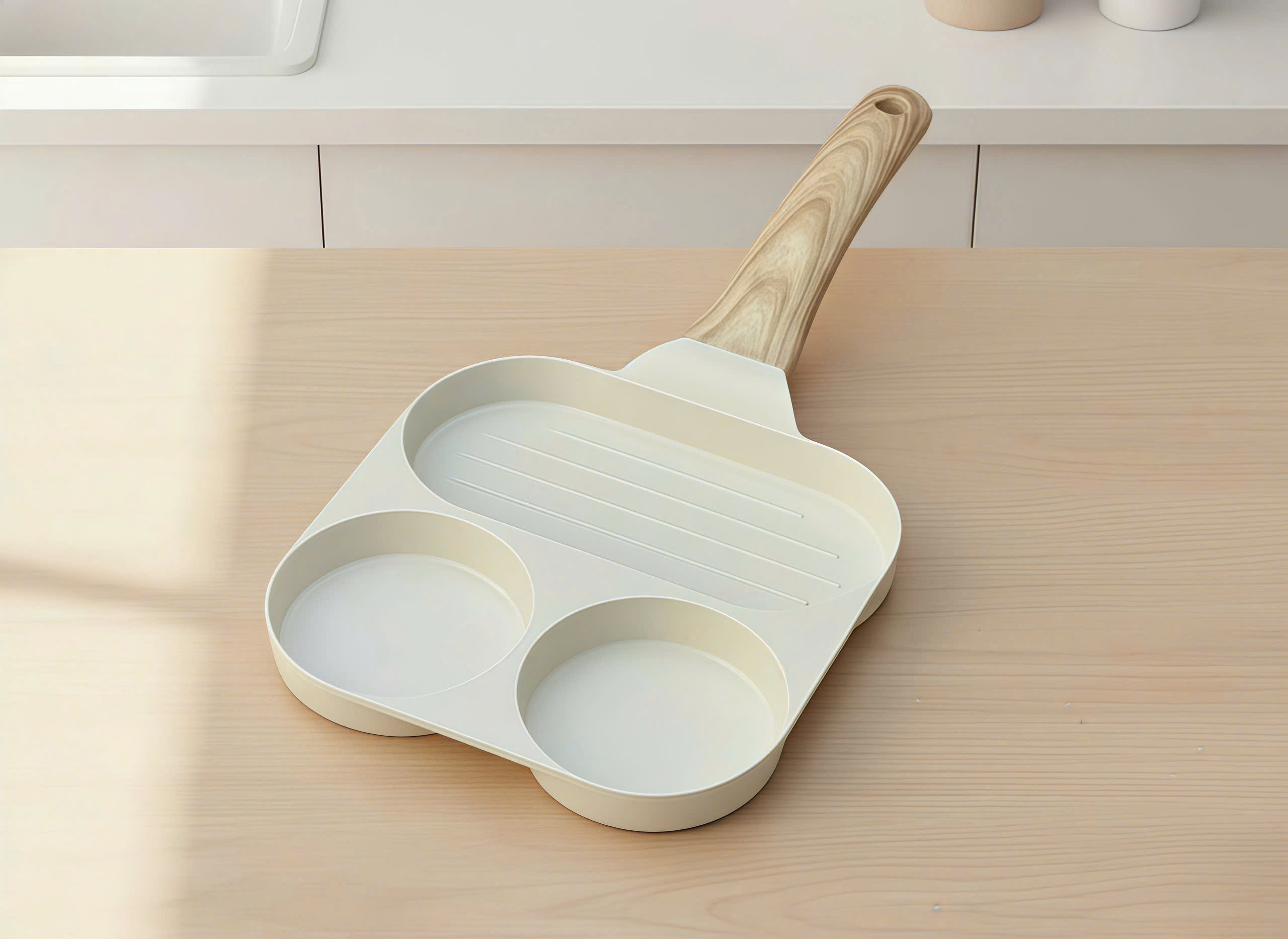 – Công dụng: chảo được thiết kế chia 3 ngăn, có thể sử dụng để chế biến cùng lúc nhiều món ăn khác nhau rất tiện lợi; đặc biệt phù hợp để chế biến bữa sáng cho gia đình. Chảo được làm bằng hợp kim nhôm đúc nguyên khối chắc chắn, bề mặt chảo phủ lớp chống dính cao cấp, được nén với áp lực lớn, bền chắc, đã được kiểm chứng khả năng chống mài mòn. Dùng cho mọi loại bếp (Bếp gas, bếp điện từ, bếp hồng ngoại, bếp điện…).