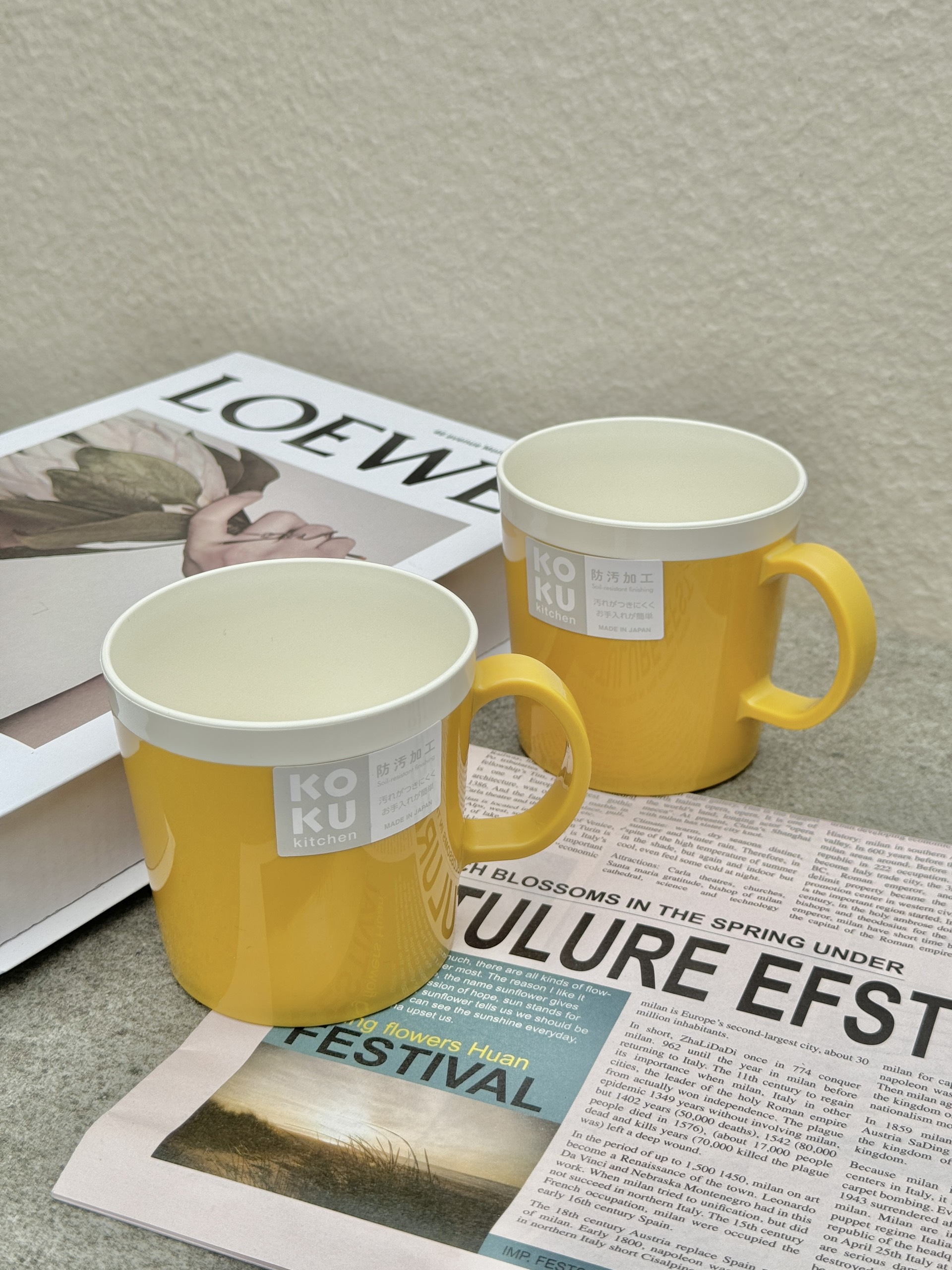 Cốc uống nước có quai cầm Koku (màu vàng