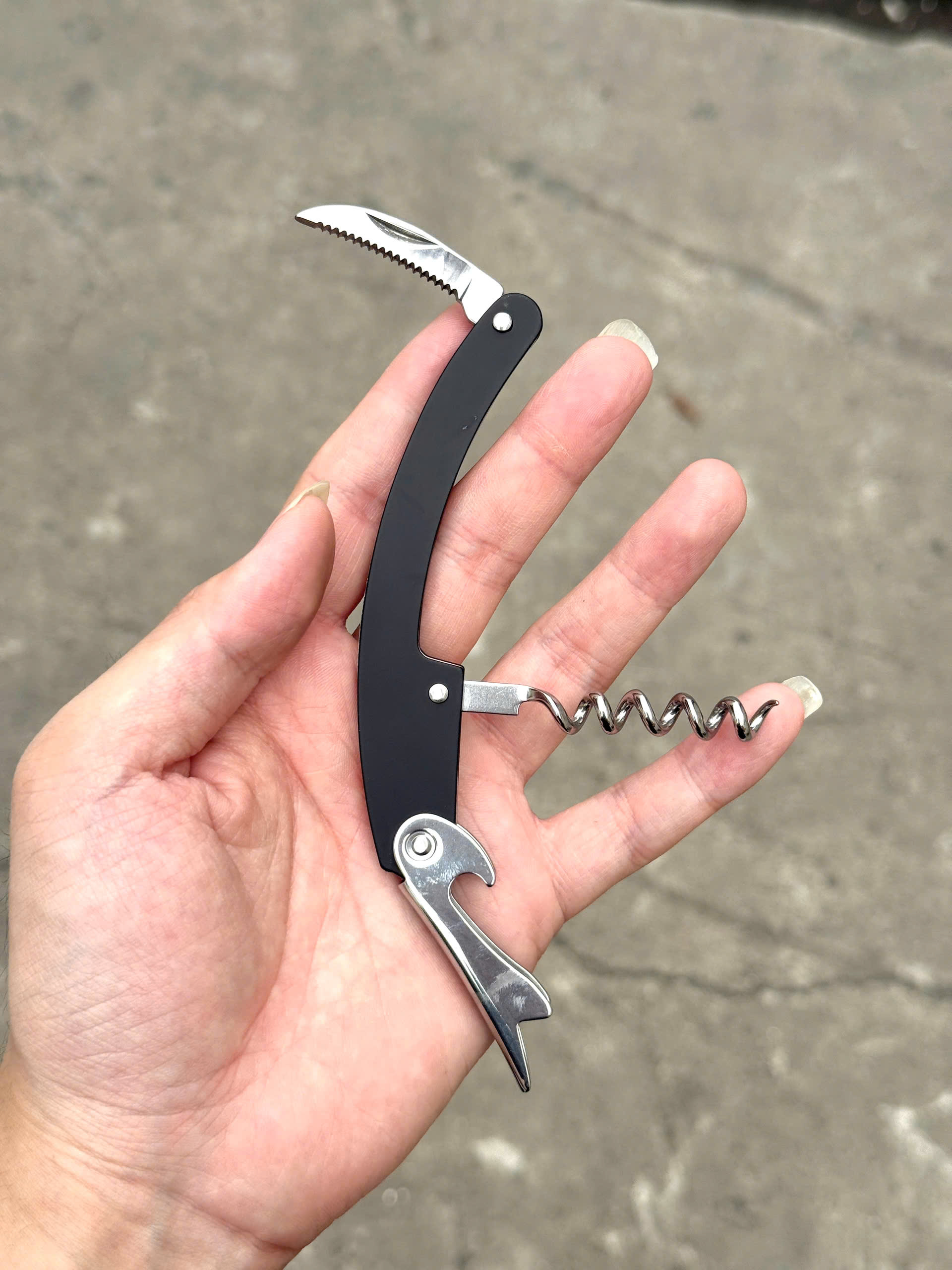– Công dụng: dùng để mở nắp rượu vang.