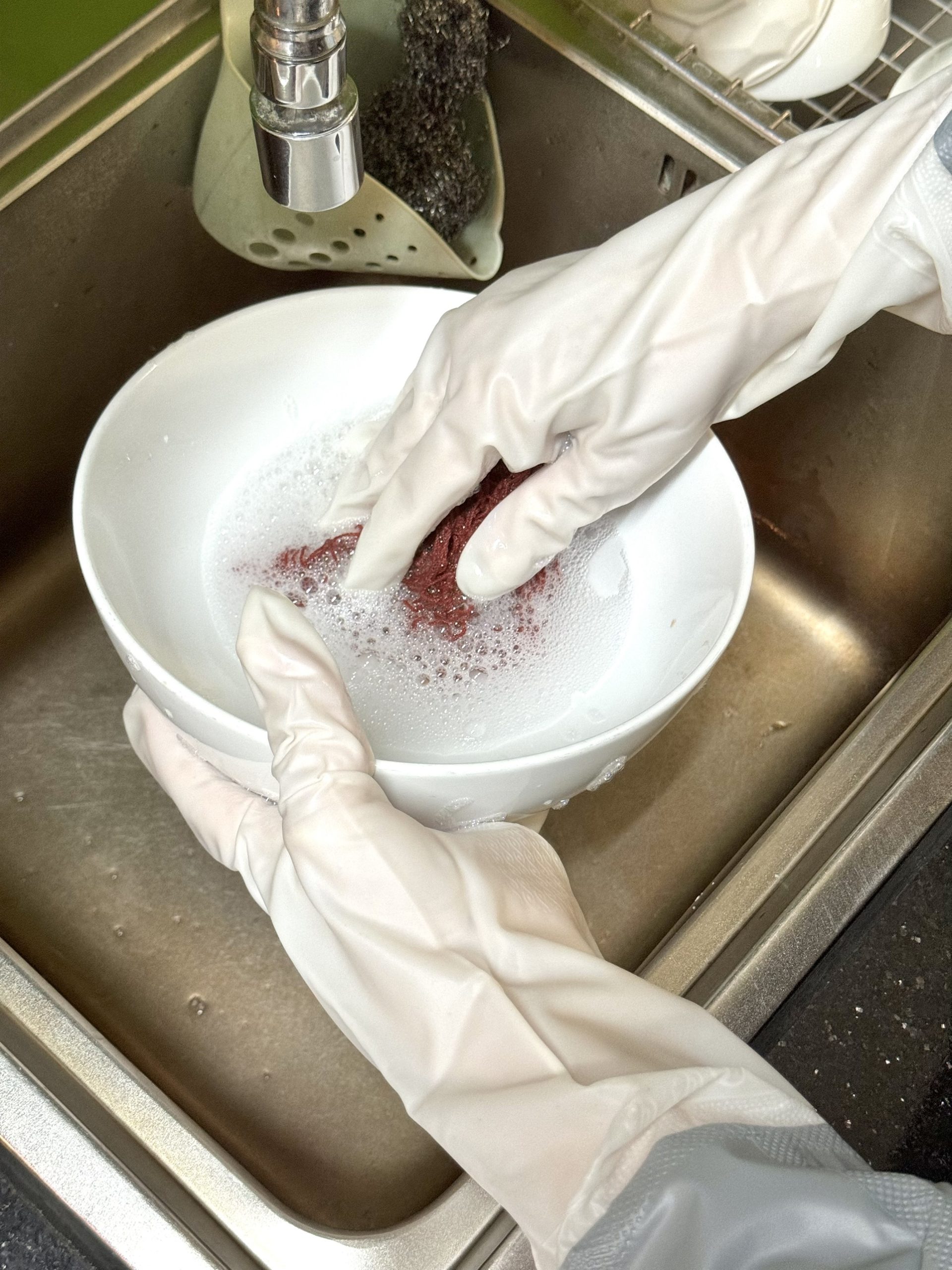 – Công dụng: Dùng để bảo vệ tay trong quá trình rửa bát, vệ sinh, dọn dẹp nhà cửa đặc biệt khi thời tiết giá rét. Độ dài găng 46cm lên đến phần bắp tay, có bo chun để giữ găng không bị tuột và tránh nước vào nên rất thuận tiện khi sử dụng