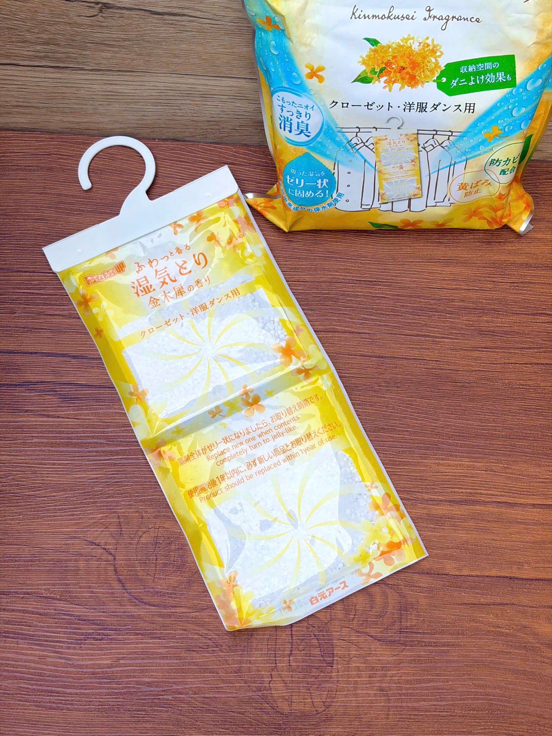 Gói 4 túi chống ẩm mốc và làm thơm tủ quần áo hương hoa mộc vàng Hakugen (dạng treo, 1 túi 2 ngăn)
