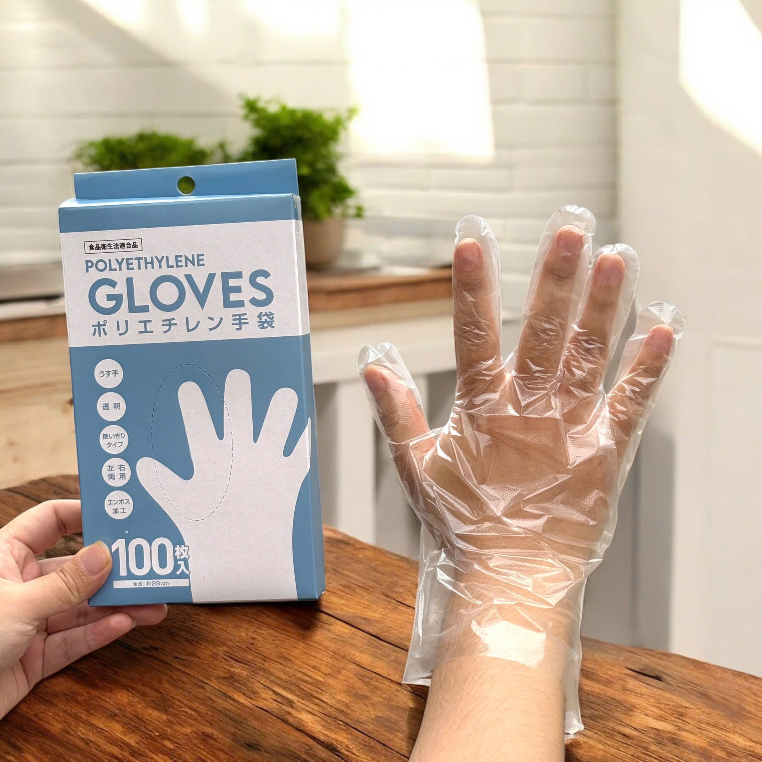 Hộp 100 găng tay nilon dùng 1 lần Kouyu – màu trắng
