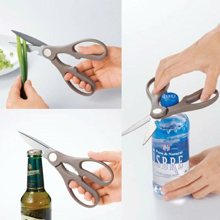 – Công dụng: Chiếc kéo nhà bếp đa năng kèm vỏ đựng nam châm có thể gắn tủ lạnh giúp bạn luôn ghi nhớ vị trí khi cần sử dụng ngay và rất an toàn khi để ngoài tầm với của trẻ nhỏ. Ngoài chức năng cắt thực phẩm thông thường còn dùng để mở nút chai bia, nắp nhựa.