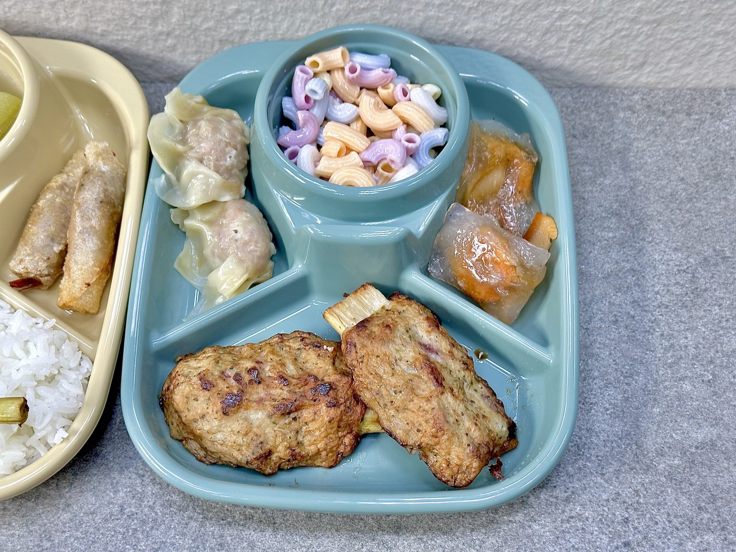 Khay ăn chia 3 ngăn kèm khay để cốc Inomata (hình chữ nhật – màu xanh)