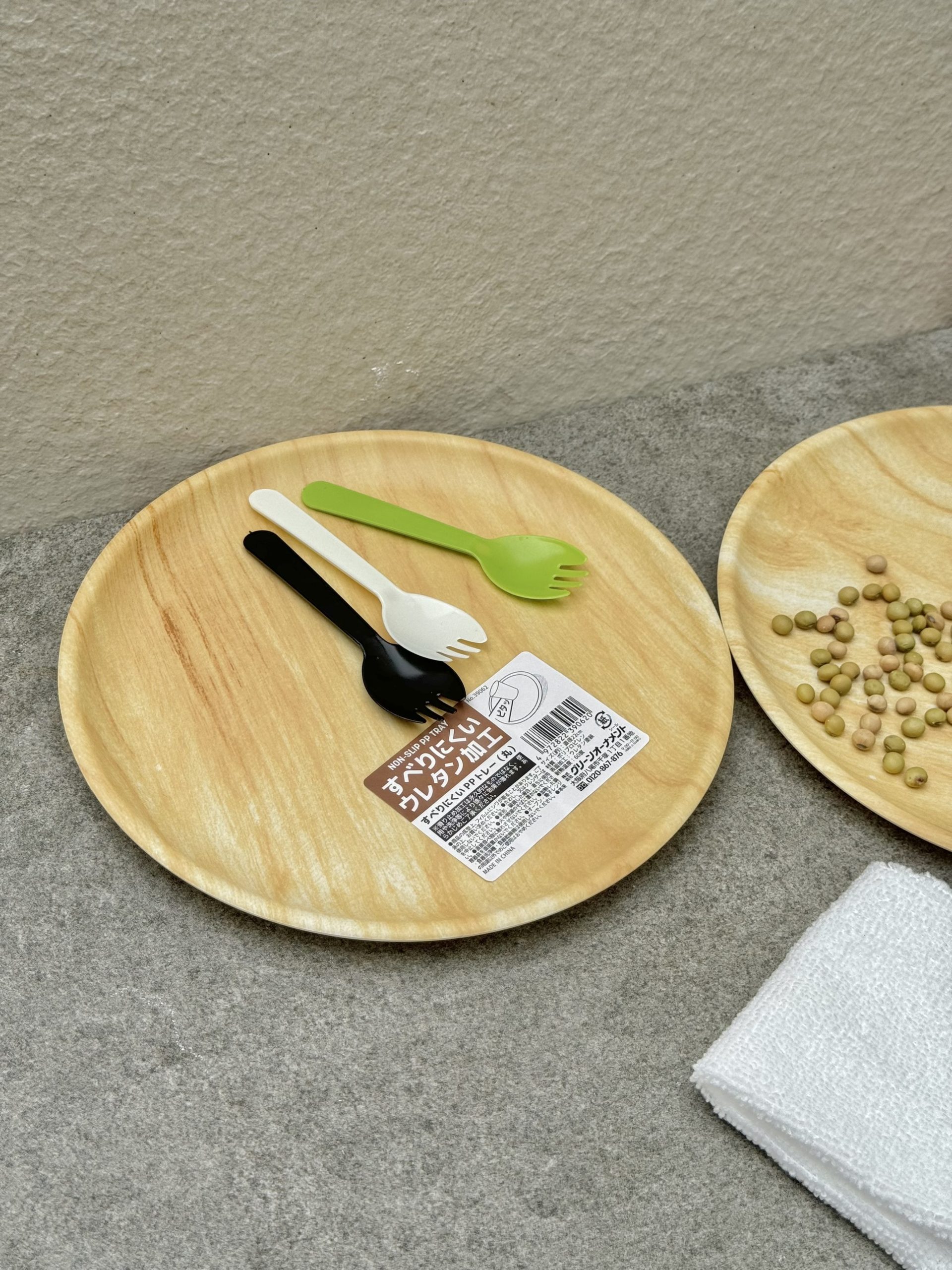 Khay đựng cốc chén bằng nhựa PP vân gỗ (hình tròn)