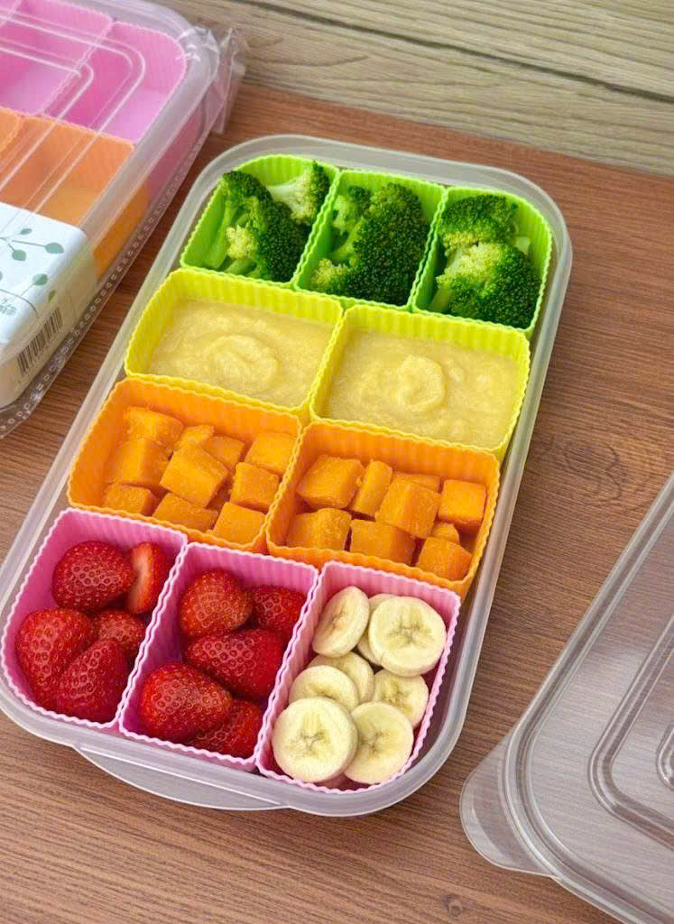 ‘- Công dụng: Những chiếc cốc đựng thức ăn bằng silicon này cho phép bạn chuẩn bị các món ăn cho bé, tạo cảm hứng và thích thú ăn uống.