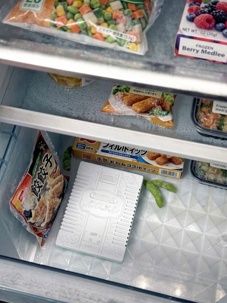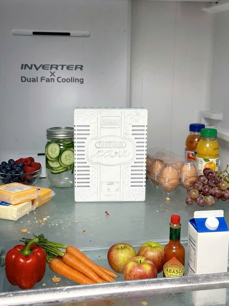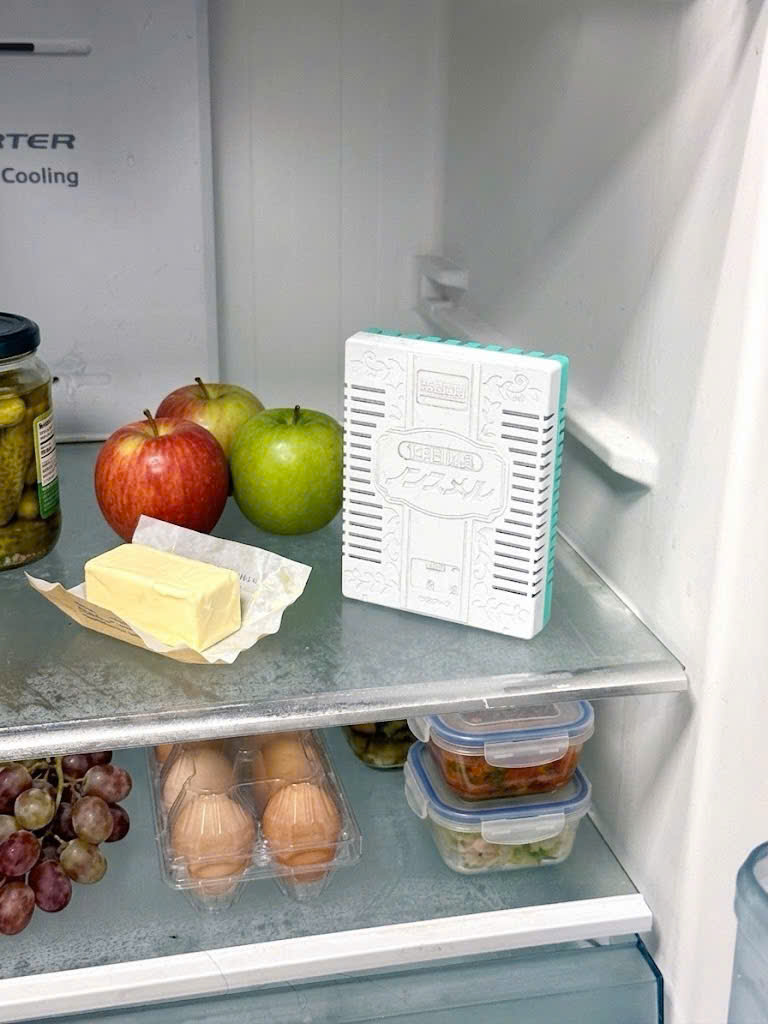 – Công dụng: giúp loại bỏ mùi khó chịu trong tủ lạnh, đặc biệt là mùi từ thịt và cá. Có công dụng với cả các thực phẩm có mùi mạnh như kim chi, mít v.v. Hộp khử mùi có khả năng giữ hiệu suất khử mùi và khử trùng trong tủ lạnh suốt 1 năm kể từ khi bắt đầu sử dụng. 1 hộp khử mùi có thể sử dụng cho tủ lạnh có dung tích lên đến 600 lít, giúp đảm bảo khả năng làm mới không khí trong không gian rộng.