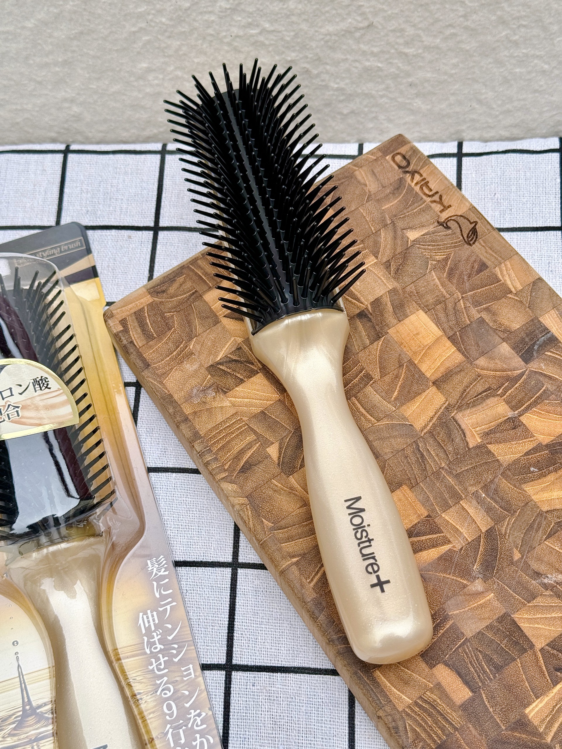 – Chất liệu: tay cầm nhựa ABS, phần lược chải: nhựa đàn hồi PE, thành phần dưỡng ẩm axit hyaluronic