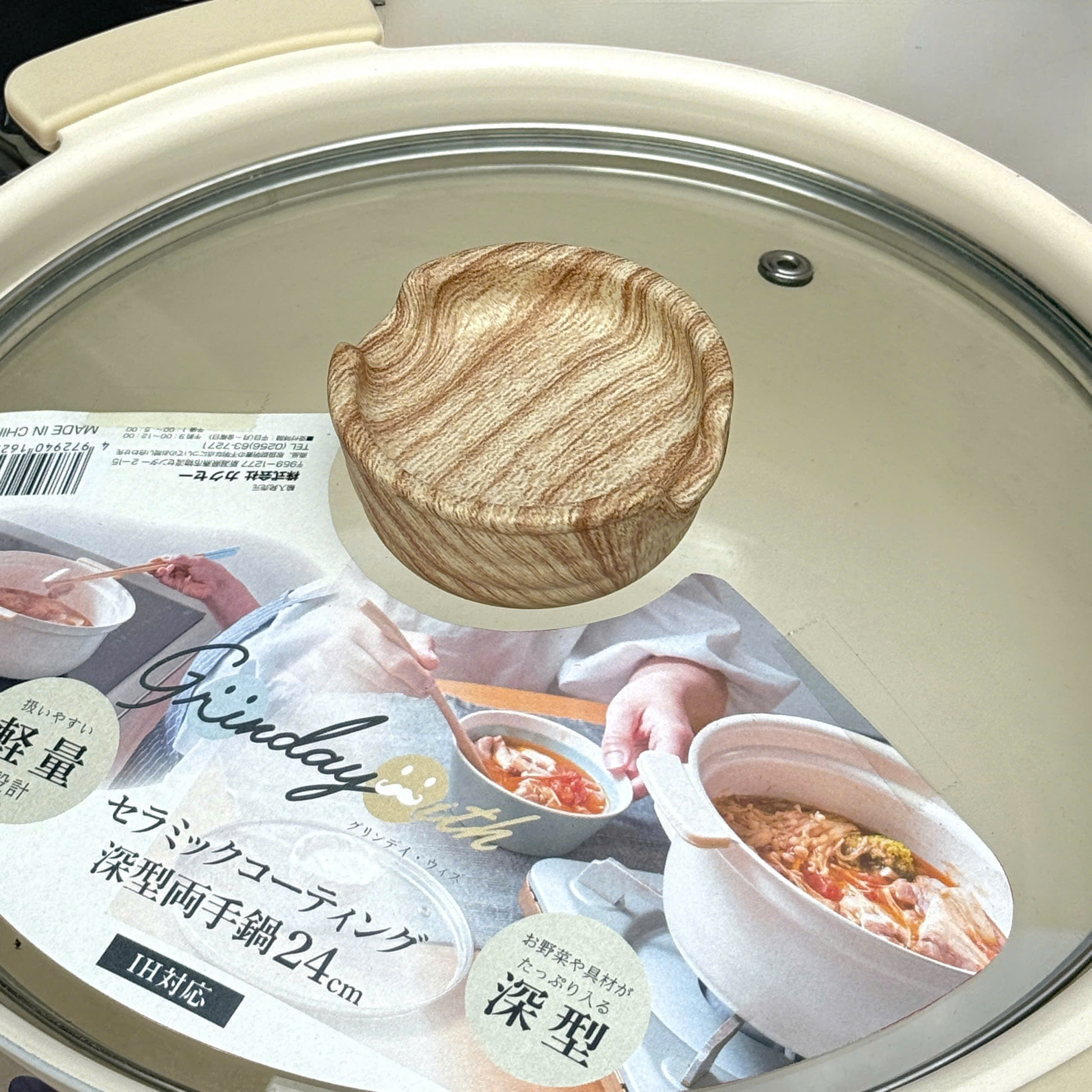 – Chất liệu: thân hợp kim nhôm phủ chống dính ceramic, đáy từ bằng thép không gỉ (18% crom, dày 2.3 mm), tay cầm có lớp bọc silicon, múm nhựa phenolic (lớp phủ silicon vân gỗ), nắp kính cường lực.