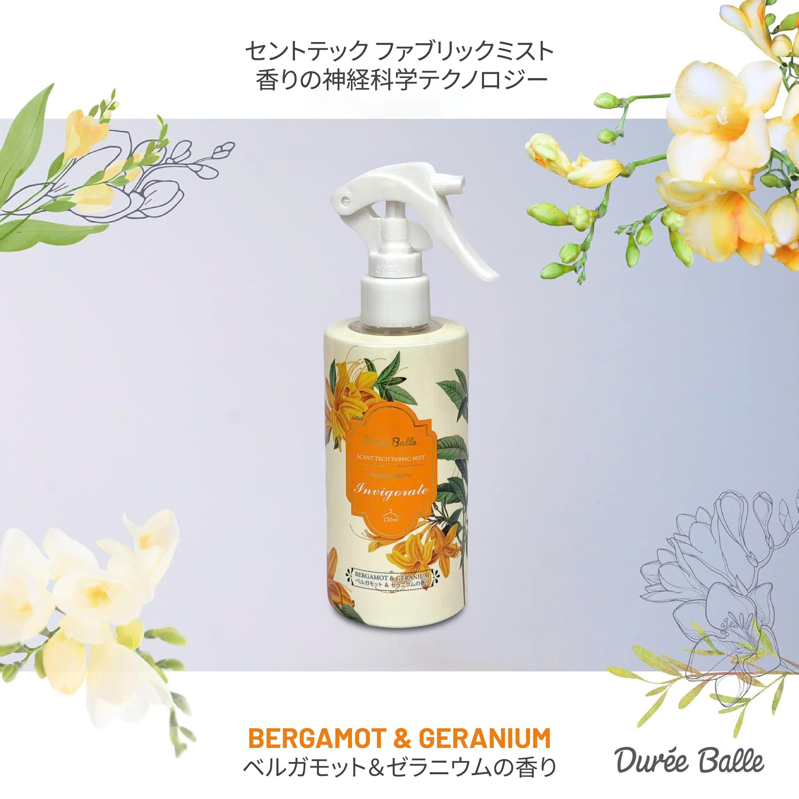 Nước hoa quần áo Duree Balle 230ml, hương cam Bergamot và hoa phong lữ (cam)