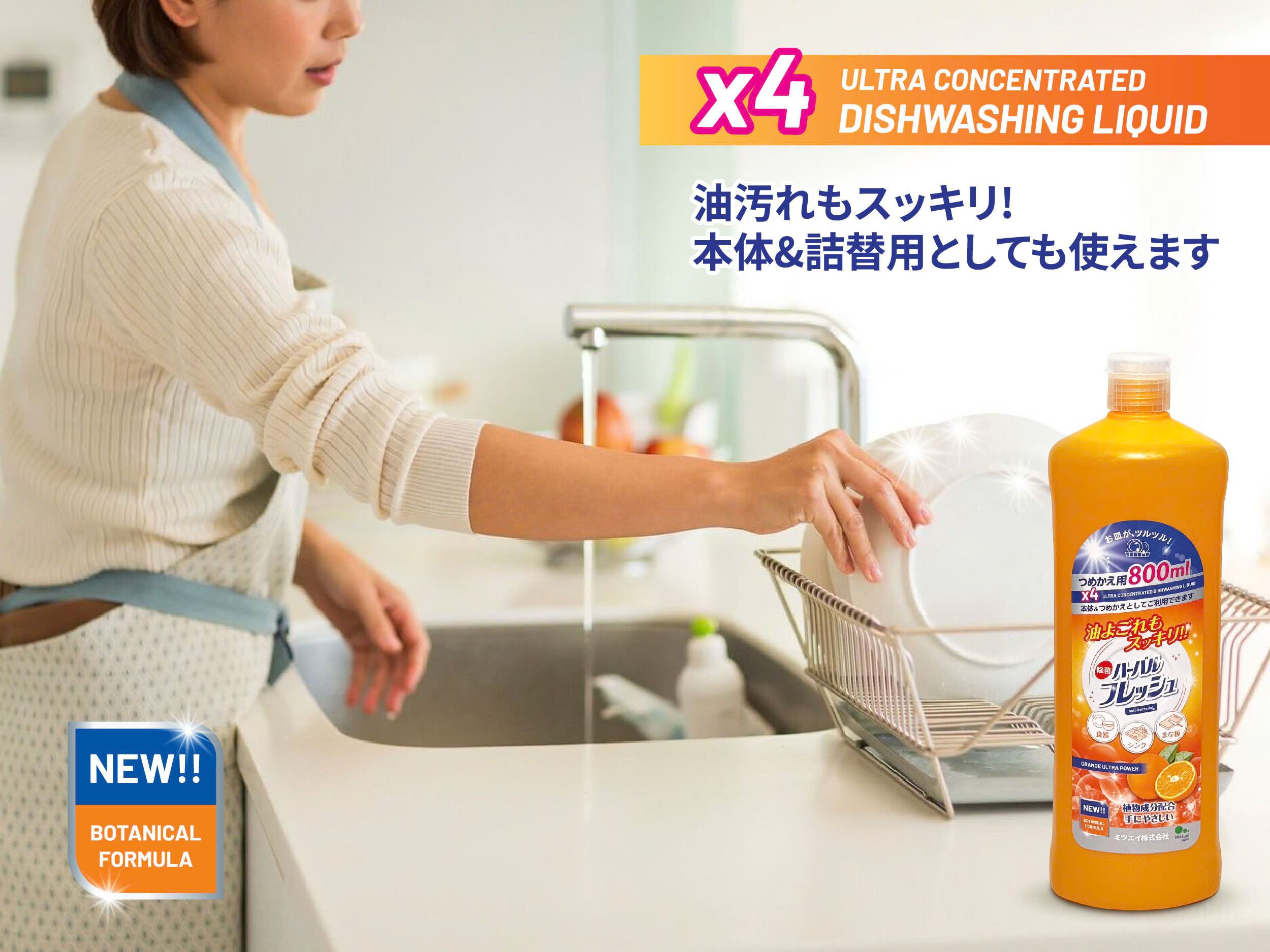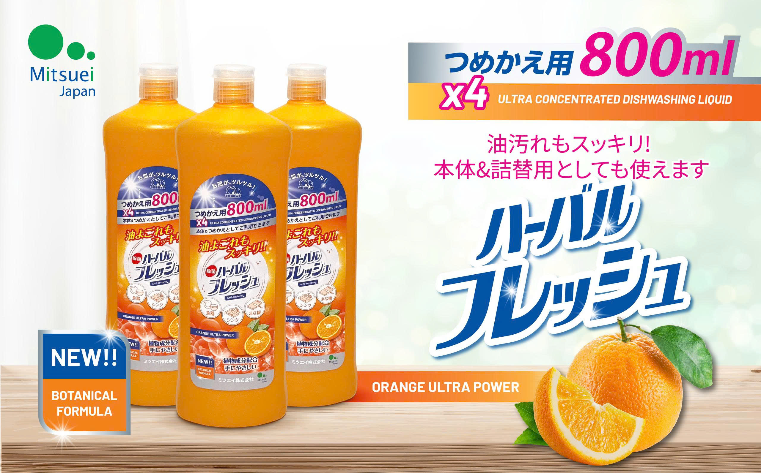 Nước rửa chén đậm đặc hương cam tươi Mitsuei 800ml
