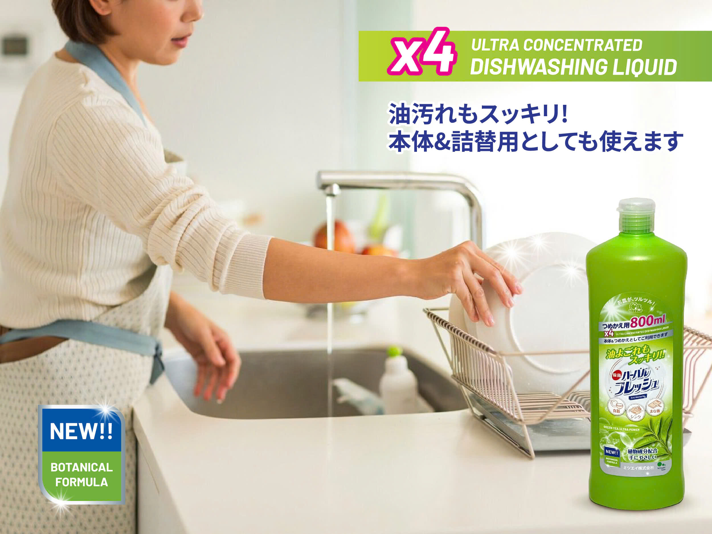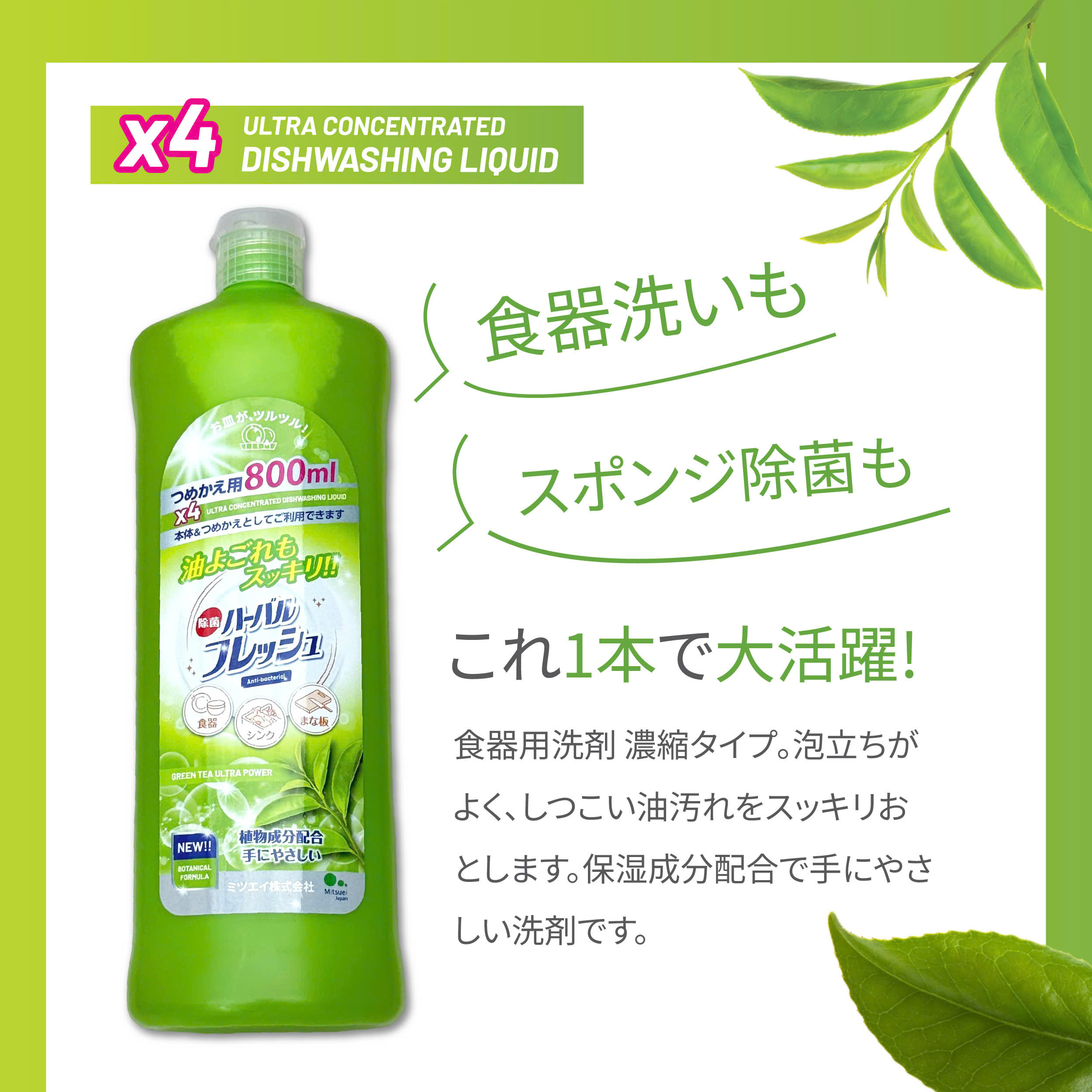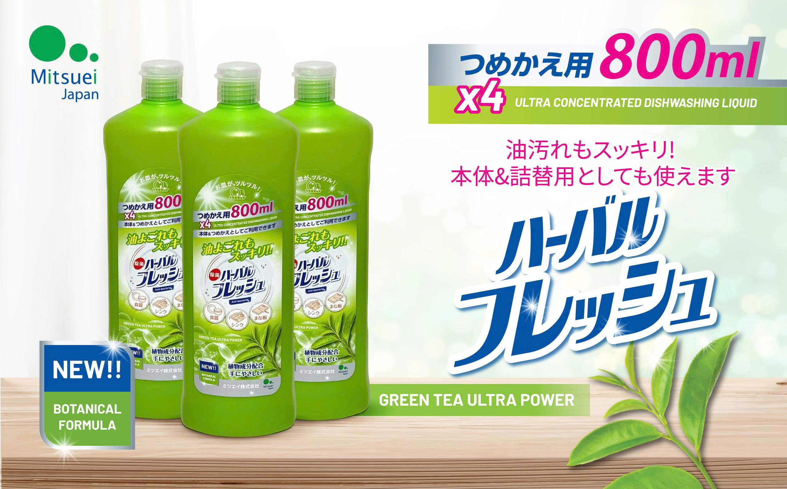 Nước rửa chén đậm đặc hương trà xanh Mitsuei 800ml