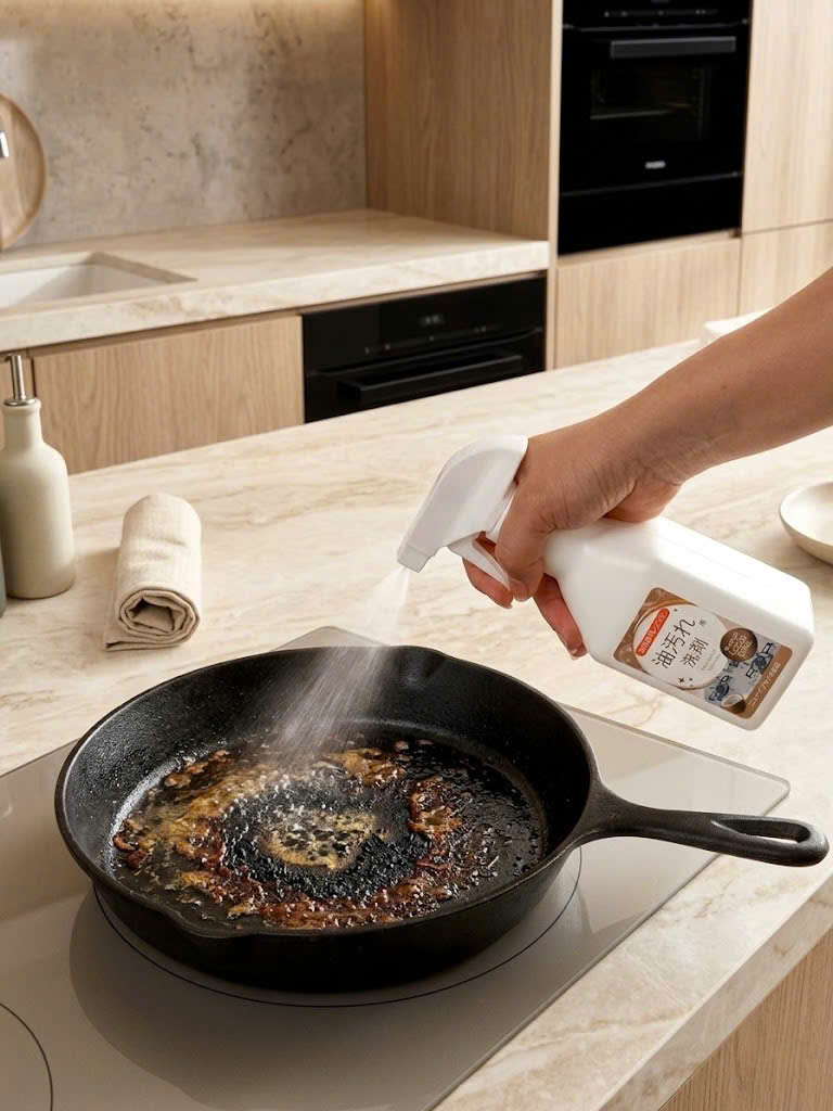 – Công dụng: Dùng để tẩy vết bẩn cứng đầu trong nhà bếp như: vết dầu mỡ xung quanh bếp, trên mặt bếp, trên máy hút mùi v.v.. Sản phẩm có chứa dầu dừa an toàn, lành tính.