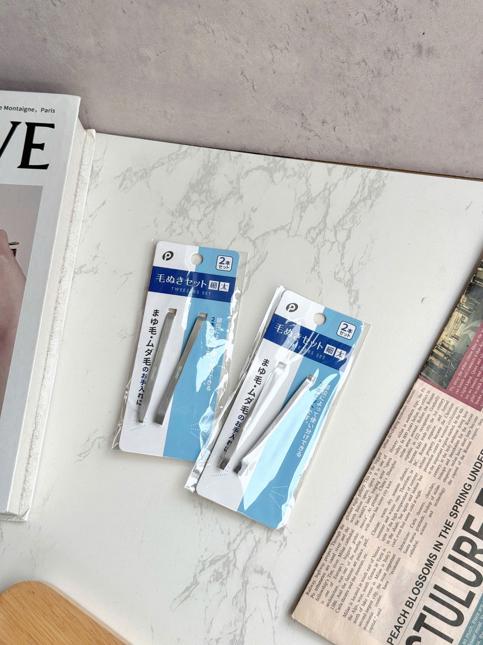 – Công dụng: dùng để nhổ tóc/lông mày, gắp các vật dụng nhỏ v.v. Gồm 2 nhíp: 1 nhíp có đầu gắp thon, nhọn; 1 nhíp có đầu gắp bằng, to do đó có thể linh hoạt sử dụng cho nhiều mục đích khác nhau.