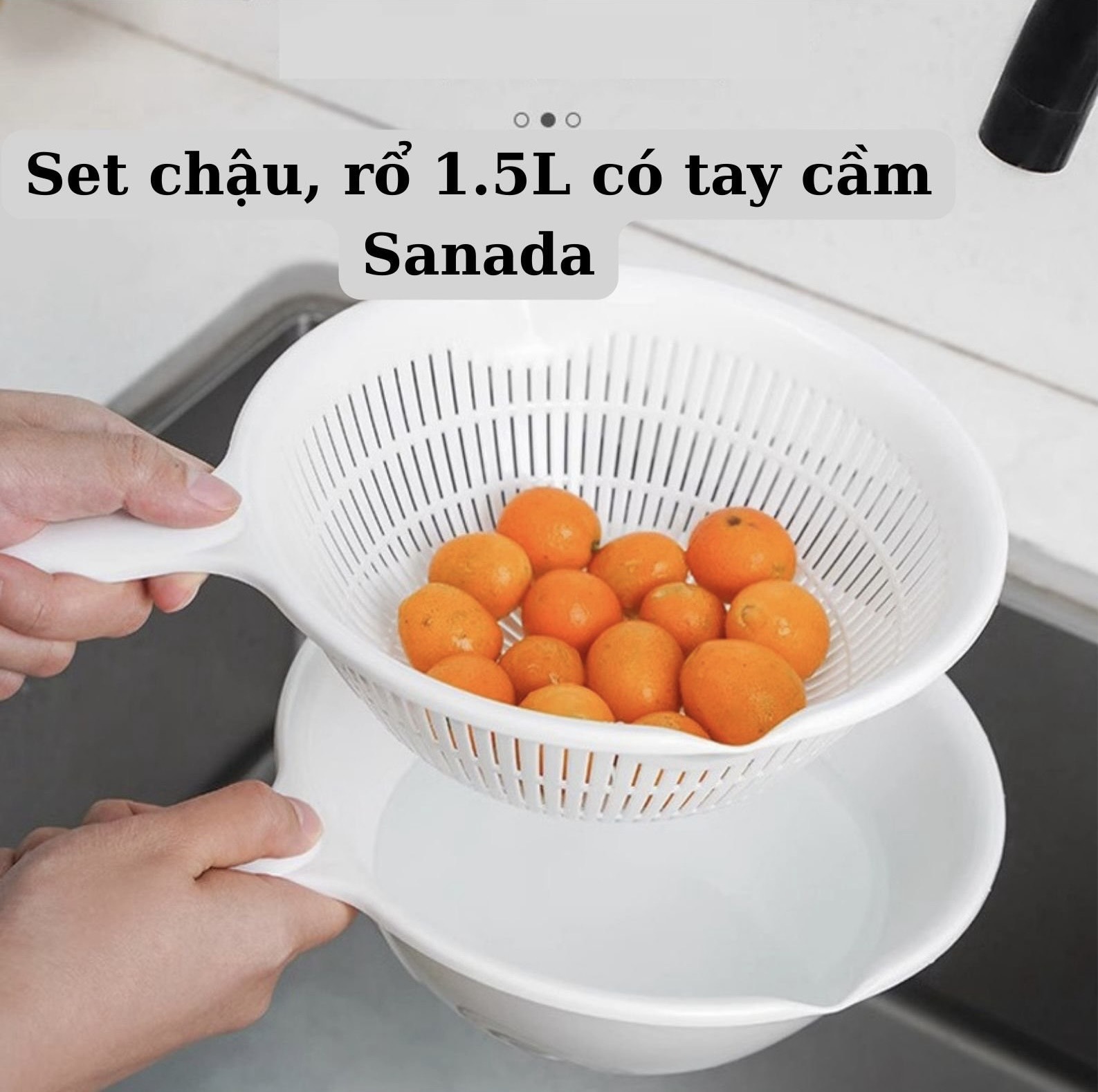 Set chậu rổ có tay cầm 1,5L màu trắng Sanada