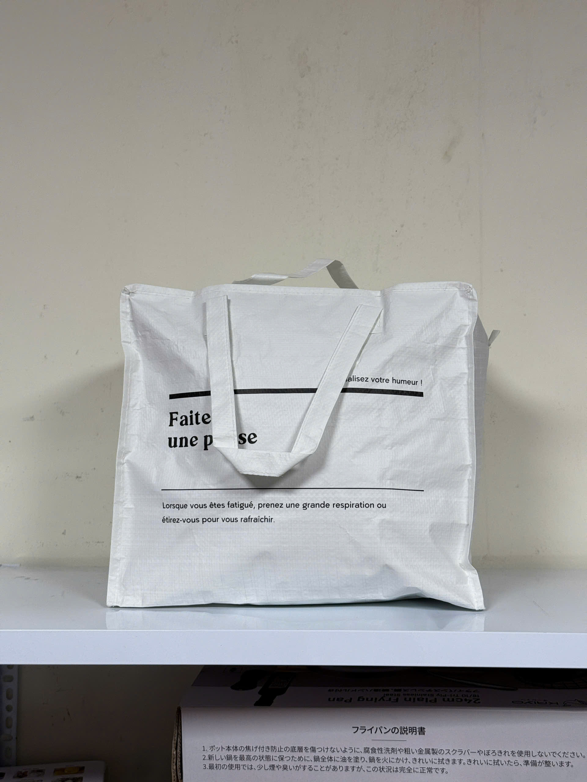 – Công dụng: túi có thể sử dụng cho đa mục đích: đi chợ, đựng đồ dã ngoại, cắm trại, đựng đồ cất gọn v.v. Túi dạng hình hộp nên có thể chứa đựng được lượng đồ lớn. Được làm từ chất liệu PP chống bẩn và chống thấm nước, sử dụng bền lâu và là 1 giải pháp thân thiện với môi trường thay vì dùng túi nylong 1 lần. Túi được thiết kế với họa tiết dạng chữ đơn giản mà thời trang.