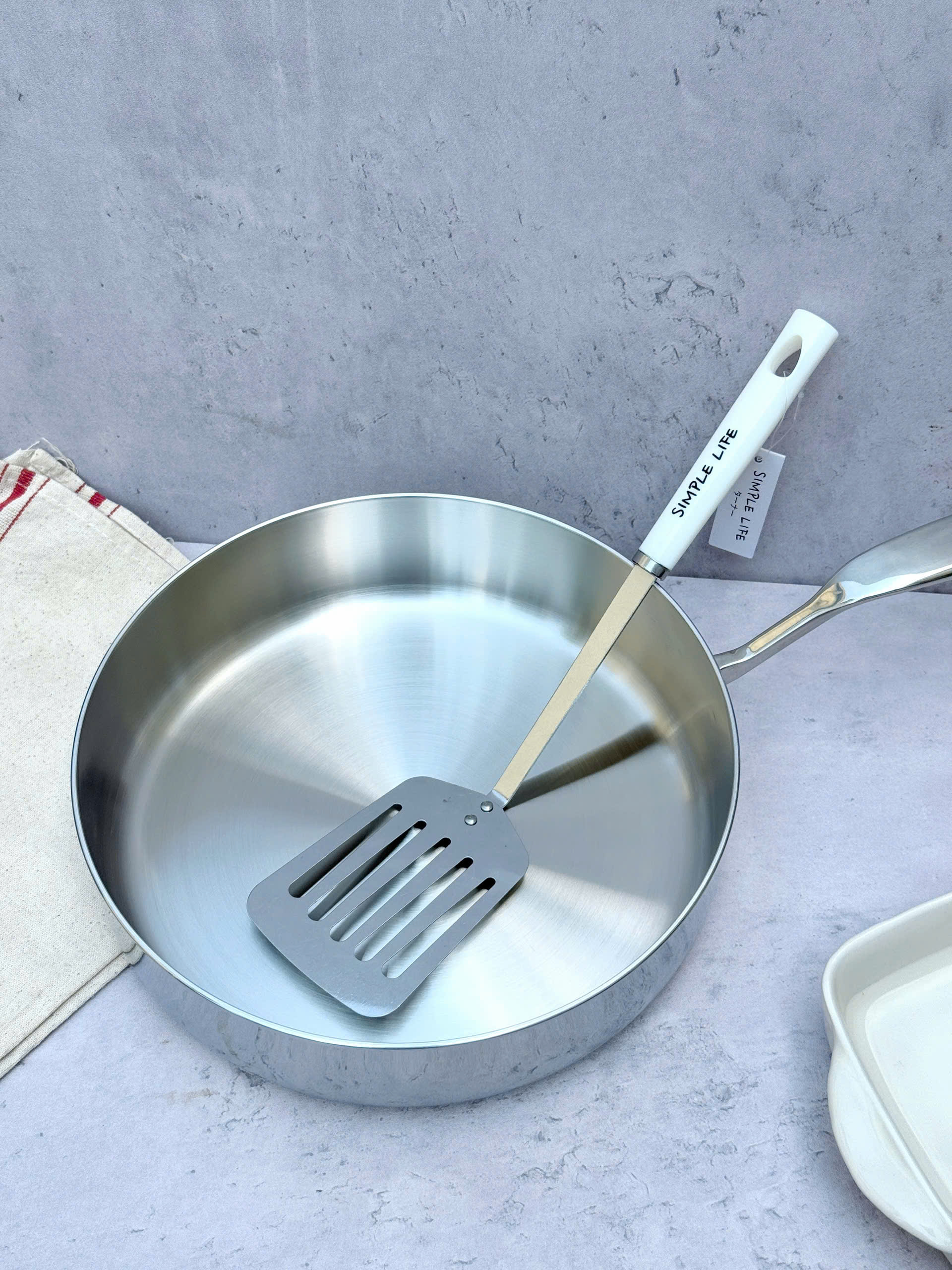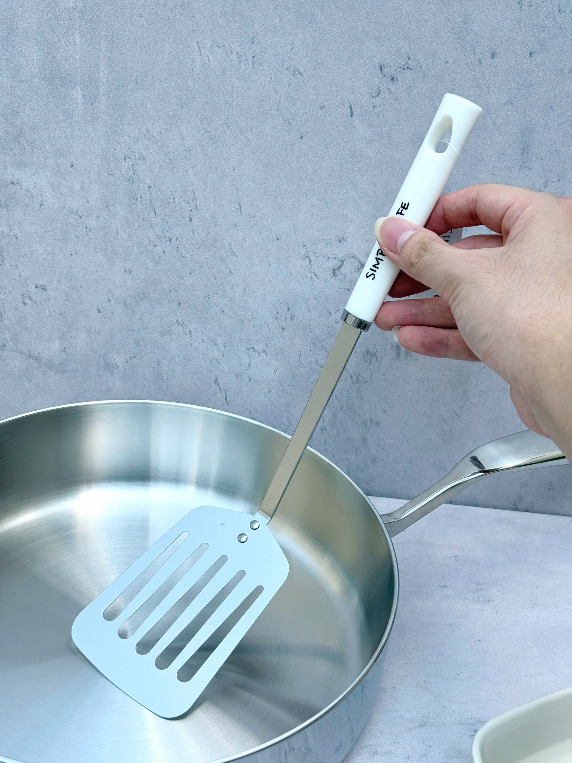 – Công dụng: Dùng để lật/đảo thức ăn như nướng thịt bò bít tết, chiên trứng, chiên cơm, rán đậu, rán cá, bánh kếp,… Với chiều dài lý tưởng 31cm với tay cầm chống nóng, sản phẩm mang lại sự tiện lợi, dễ dàng thao tác. Chất liệu inox đảm bảo độ bền và an toàn cho sức khỏe. Lỗ treo tiện lợi.